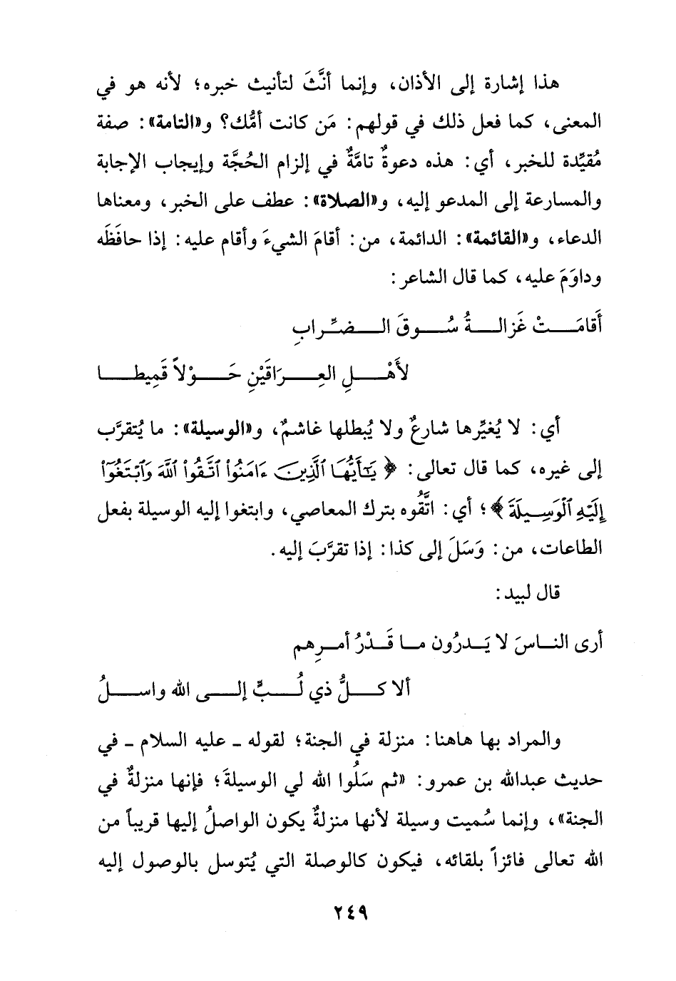 هذا إشارة إلى الأذان , وإنما أنث لتأنيث خبره , لأنه هو في المعنى , كما فعل ذلك في قولهم: من كانت أمك؟ و " التامة ": صفة مقيدة للخبر , أي: هذه دعوة تامة في إلزام الحجة وإيجاب الإجابة والمسارعة إلى المدعو إليه , و" الصلاة ": عطف على الخبر , ومعناها الدعاء , و"القائمة ": الدائمة , من: أقام الشيء وأقام عليه: إذا حافظه وداوم عليه , كما قال الشاعر: