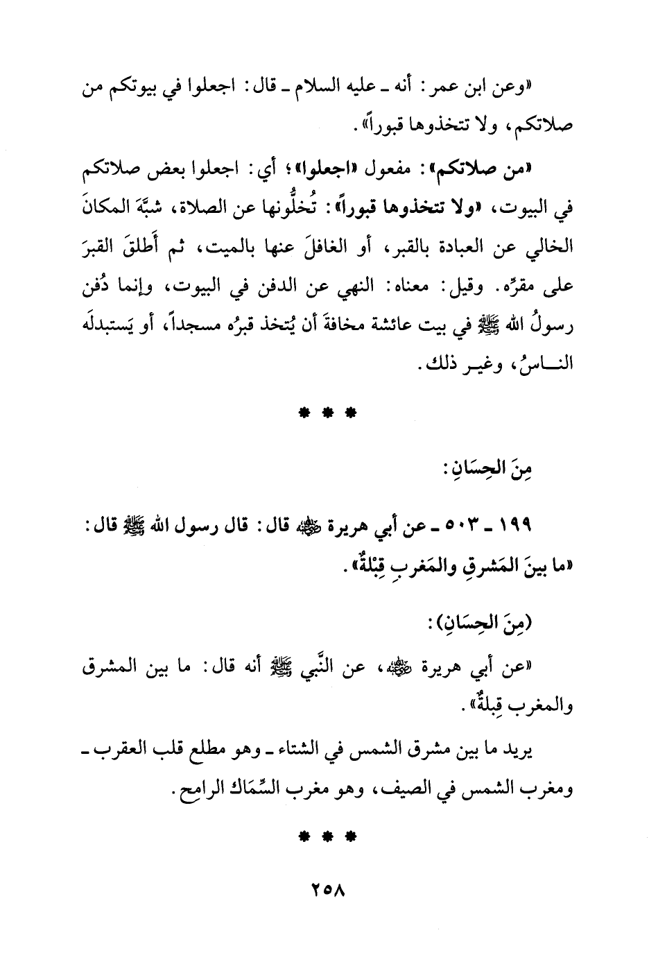 199 – 503 – عن أبي هريرة رضي الله عنه قال: قال رسول الله صلى الله عليه وسلم:" ما بين المشرق والمغرب قبلة ".