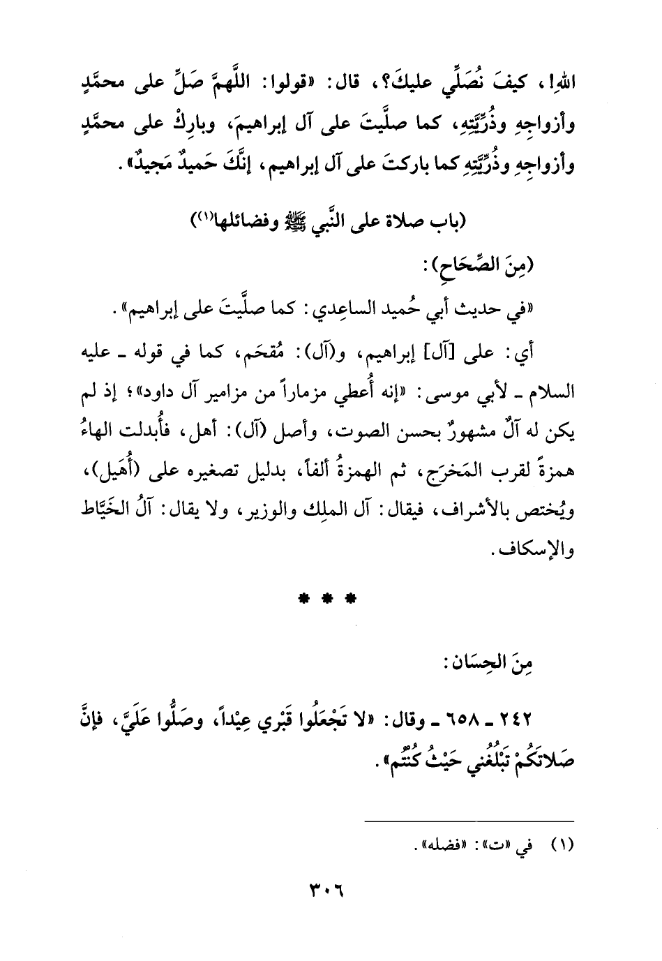 242 - 658 - وقال: " لا تجعلوا قبري عيدا , وصلوا علي , فإن صلاتكم تبلغني حيث كنتم ".