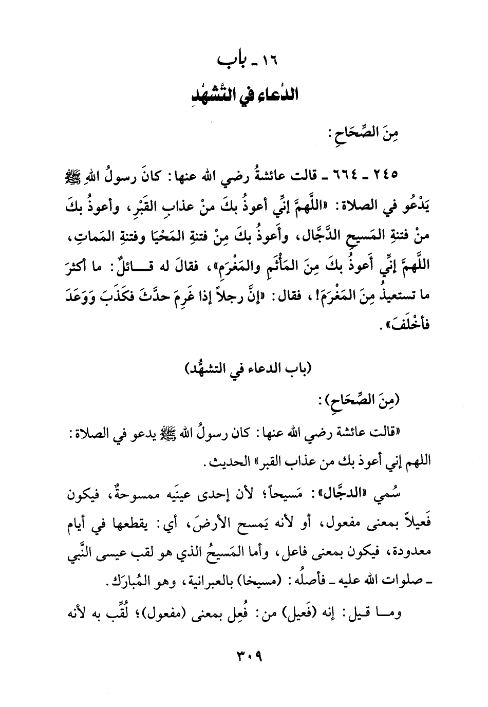245 - 664 - قالت عائشة رضي الله عنها: كان رسول الله صلى الله عليه وسلم يدعو في الصلاة: " اللهم إني أعوذ بك من عذاب القبر , وأعوذ بك من فتنة المسيح الدجال , وأعوذ بك من فتنة المحيا وفتنة الممات , اللهم إني أعوذ بك من المأثم والمغرم " , فقال له قائل: ما أكثر ما تستعيذ من المغرم! , فقال: " إن رجلا إذا غرم حدث فكذب ووعد فأخلف ".