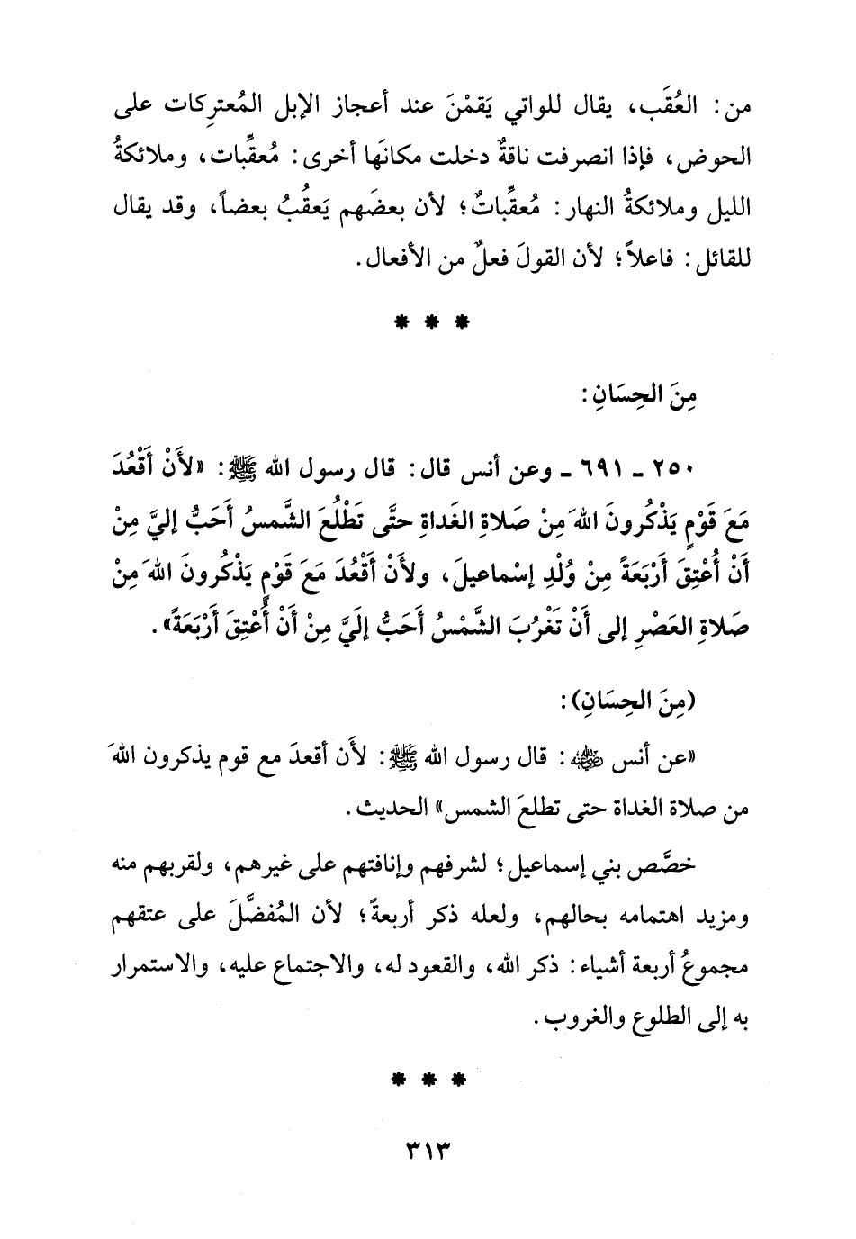 250 - 691 - وعن أنس قال: قال رسول الله صلى الله عليه وسلم: " لأن أقعد مع قوم يذكرون الله من صلاة الغداة حتى تطلع الشمس أحب إلي من أن أعتق أربعة من ولد إسماعيل , ولأن أقعد مع قوم يذكرون الله من صلاة العصر إلى أن تغرب الشمس أحب إلي من أن أعتق أربعة ".