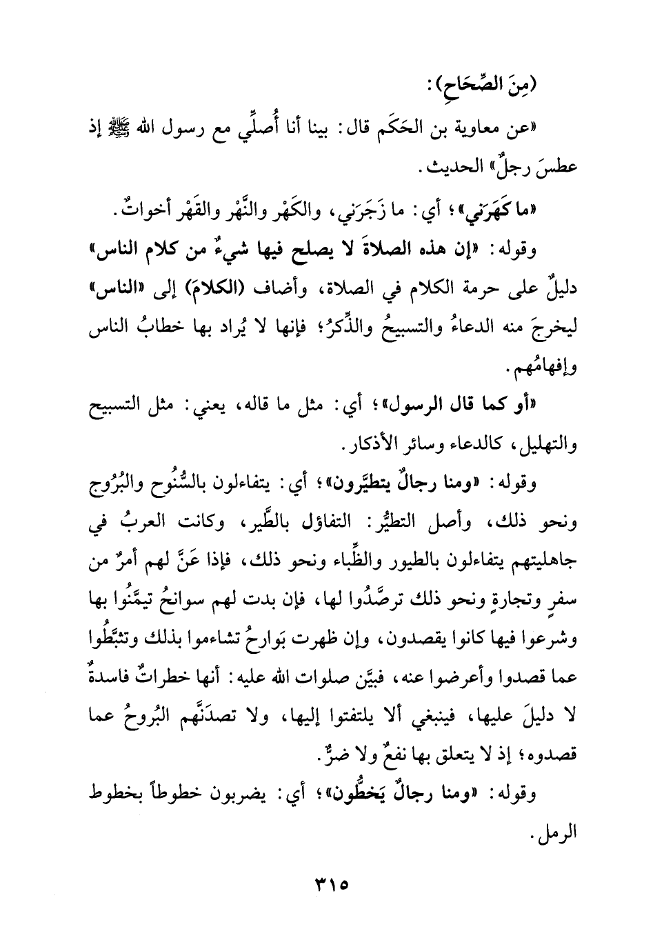 وقوله: " إن هذه الصلاة لا يصلح فيها شيء من كلام الناس " دليل على حرمة الكلام في الصلاة , وأضاف (الكلام) إلى "الناس " ليخرج منه الدعاء والتسبيح والذكر , فإنها لا يراد بها خطاب الناس وإفهامهم.