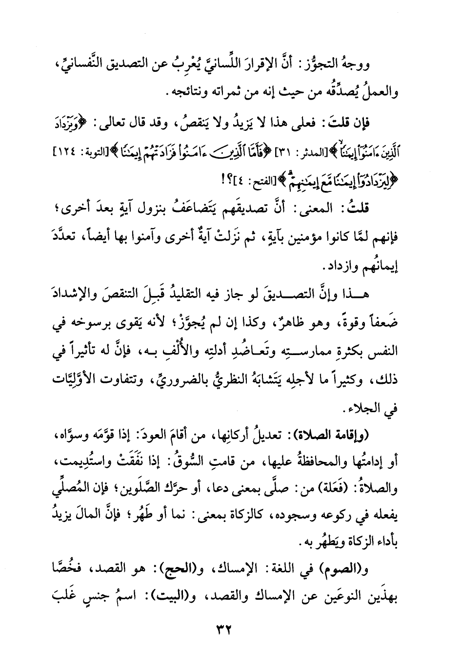 هذا وإن التصديق لو جاز فيه التقليد قبل التنقص والاشداد