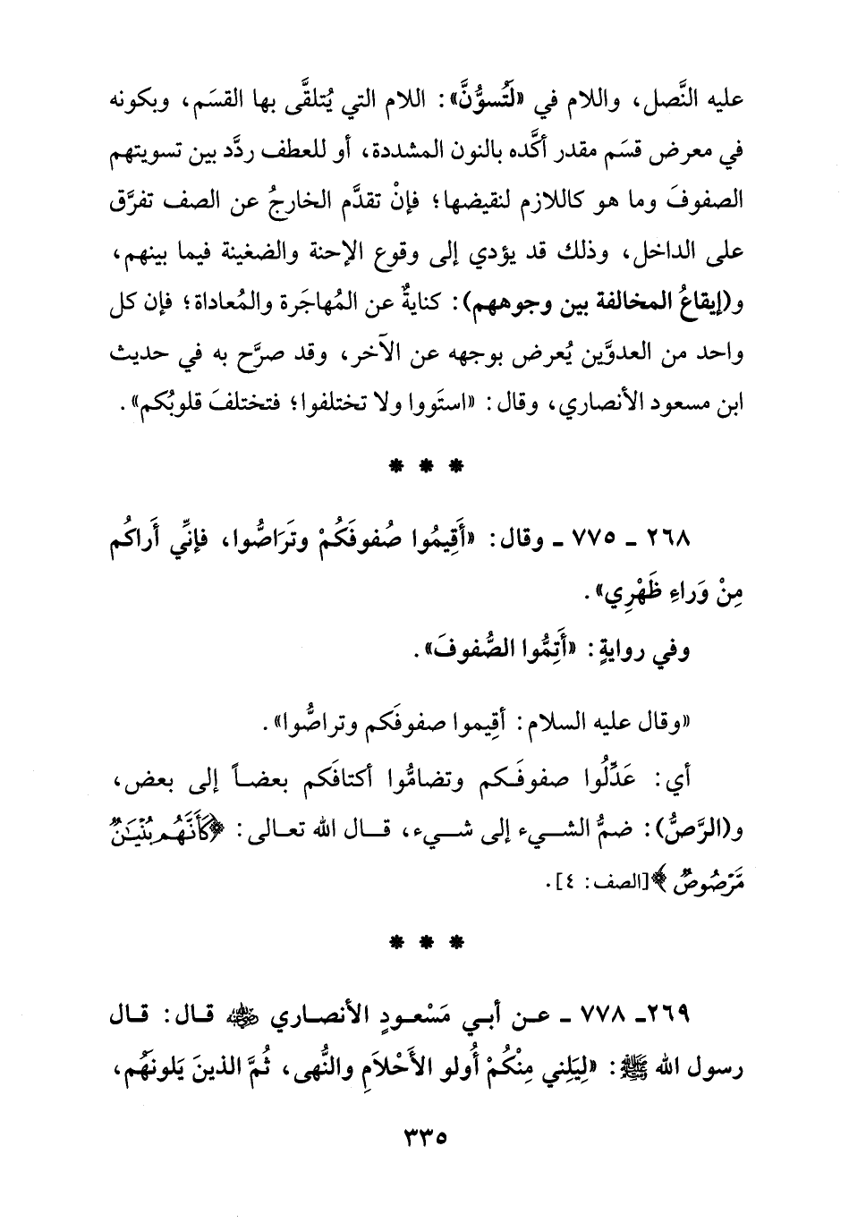 268 - 775 - وقال: " أقيموا صفوفكم وتراصوا , فإني أراكم من وراء ظهري ".
