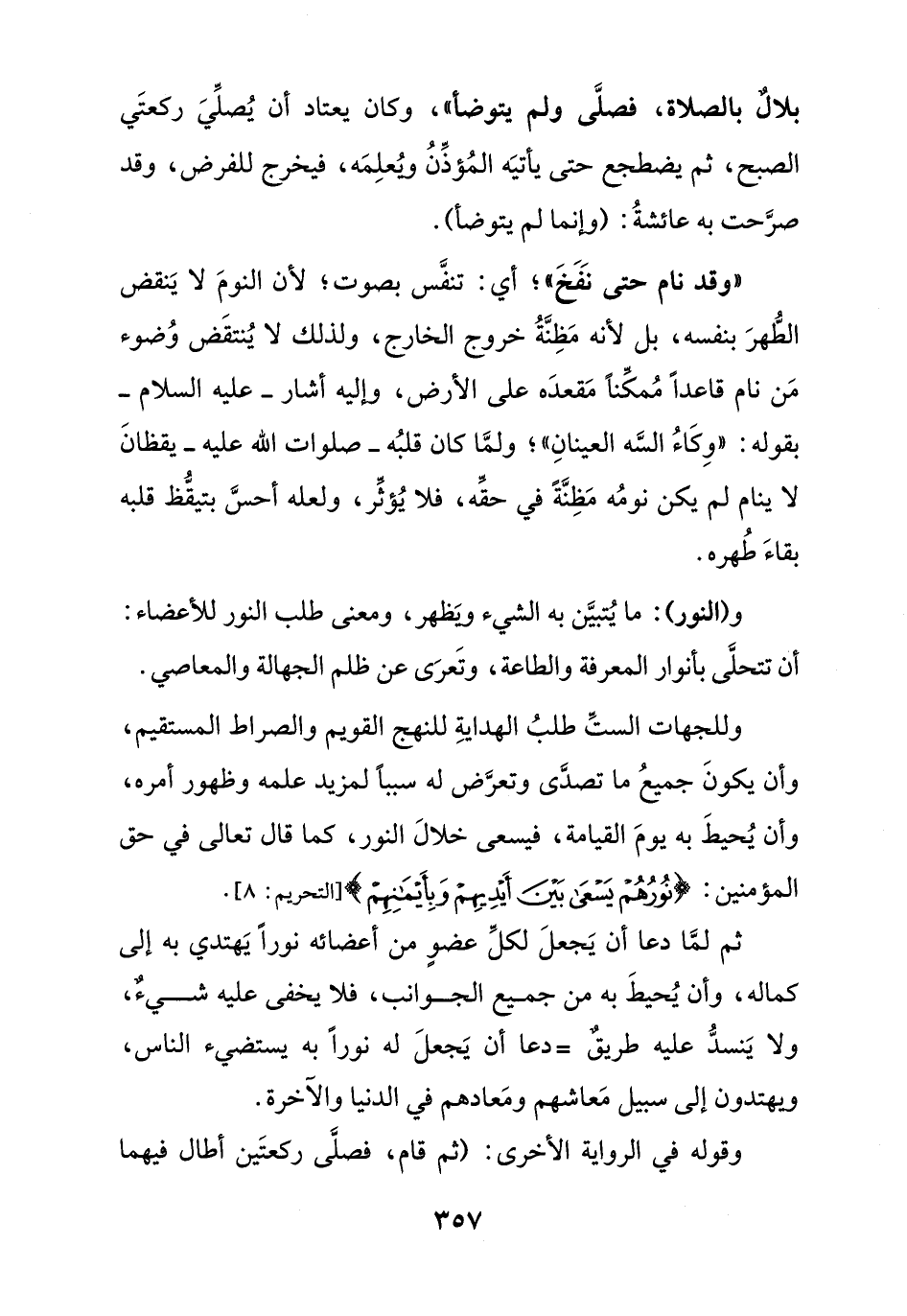 و (النور): ما يتبين به الشيء ويظهر , ومعنى طلب النور للأعضاء: أن تتحلى بأنوار المعرفة والطاعة , وتعرى عن الظلم الجهالة والمعاصي.