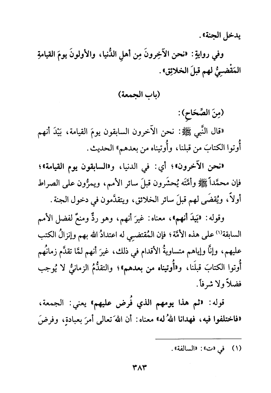 "قال النبي صلى الله عليه وسلم: نحن الآخرون السابقون يوم القيامة , بيد أنهم أوتوا الكتاب من قبلنا , وأوتيناه من بعدهم " الحديث.