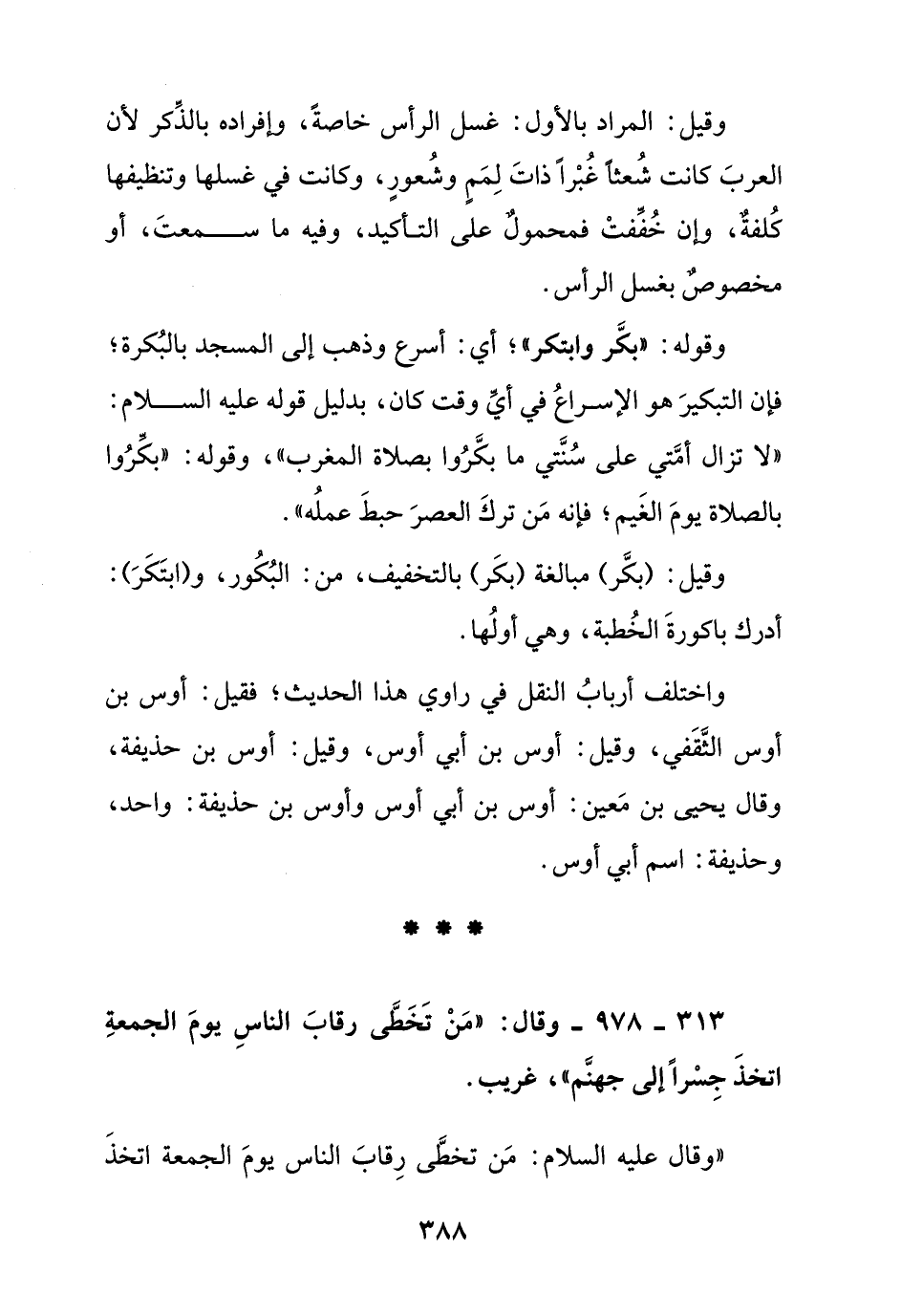 313 - 978 - وقال: " من تخطى رقاب الناس يوم الجمعة اتخذ جسرا إلى جهنم " غريب.