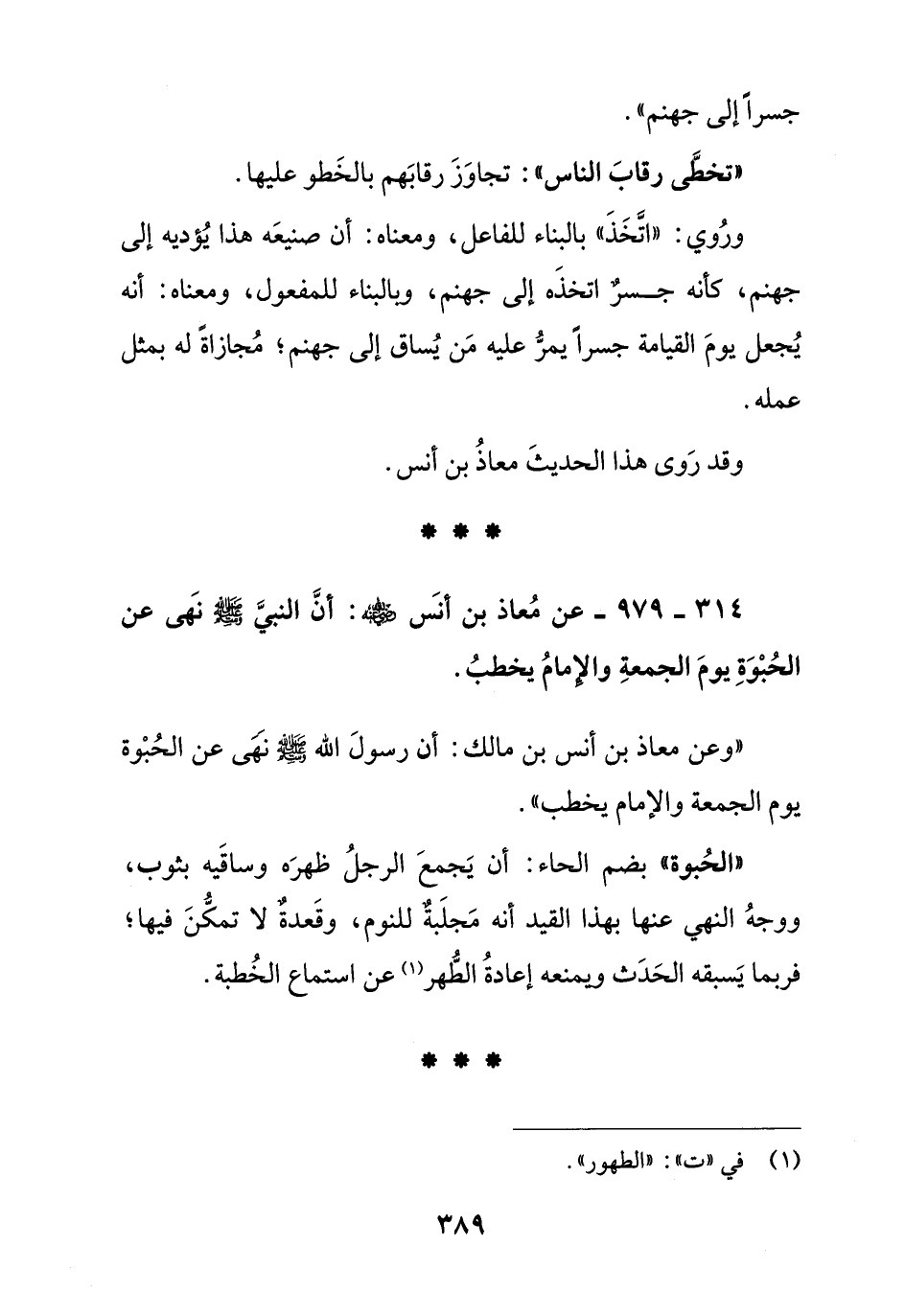 314 - 979 - عن معاذ بن أنس رضي الله عنه: أن النبي صلى الله عليه وسلم نهى عن الحبوة يوم الجمعة والإمام يخطب.