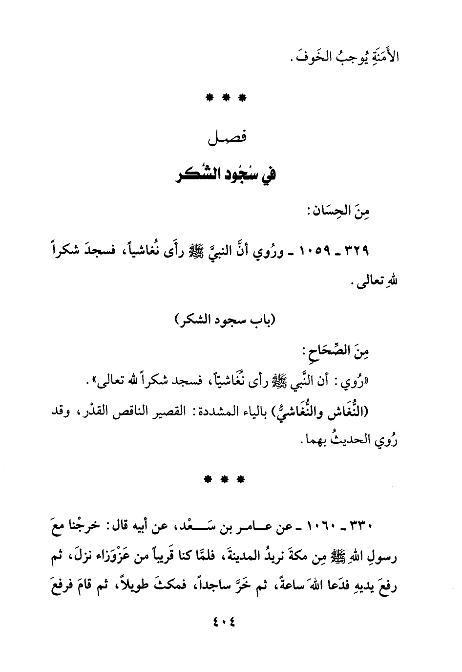 329 - 1059 - وروي أن النبي صلى الله عليه وسلم رأى نغاشيا , فسجد شكرا لله تعالى.