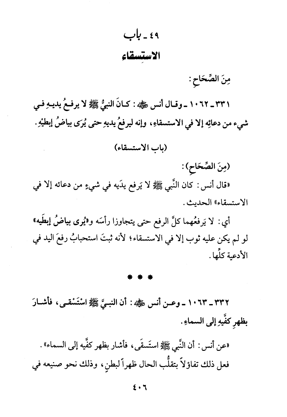 332 - 1063 - وعن أنس رضي الله عنه: أن النبي صلى الله عليه وسلم استسقى , فأشار بظهر كفيه إلى السماء.