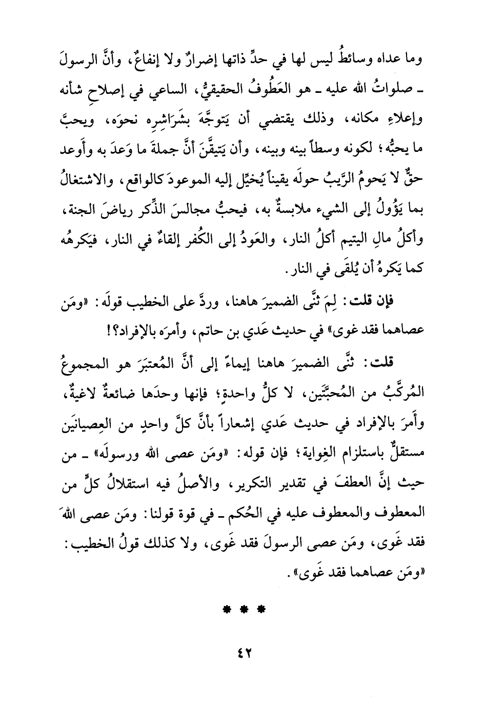فقد غوى, ومن عصى الرسول فقد غوى ولا كذلك قول الخطيب:
