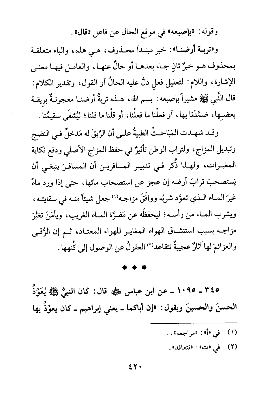 345 - 1095 - عن ابن عباس رضي الله عنه قال: كان النبي صلى الله عليه وسلم يعوذ الحسن والحسين ويقول: " إن أباكما - يعني إبراهيم - كان يعوذ بها