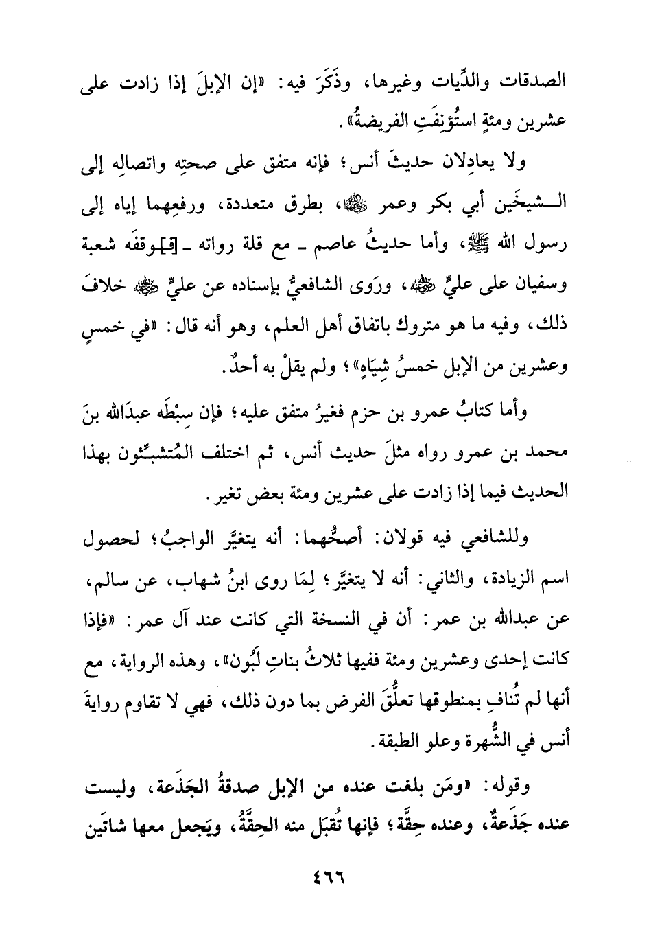 وأما كتاب عمرو بن حزم فغير متفق عليه , فإن سبطه عبد الله بن محمد بن عمرو رواه مثل حديث أنس , ثم اختلف المتشبثون بهذا الحديث فيما إذا زادت على عشرين ومئة بعض تغير.
