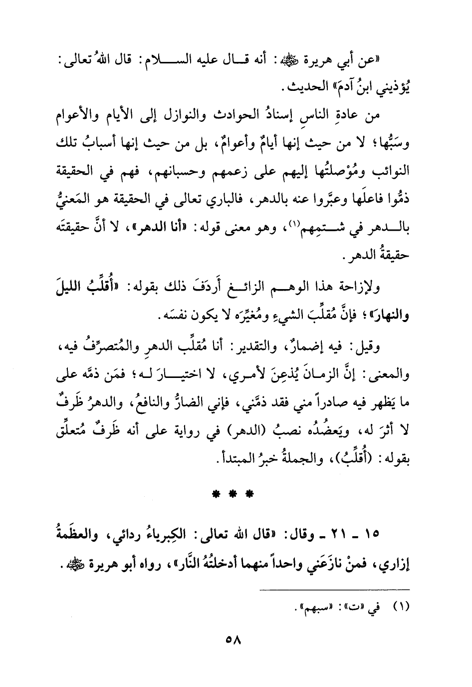 15 – 21 – وقال:" قال الله تعالى: الكبرياء ردائي, والعظمة إزاري, فمن