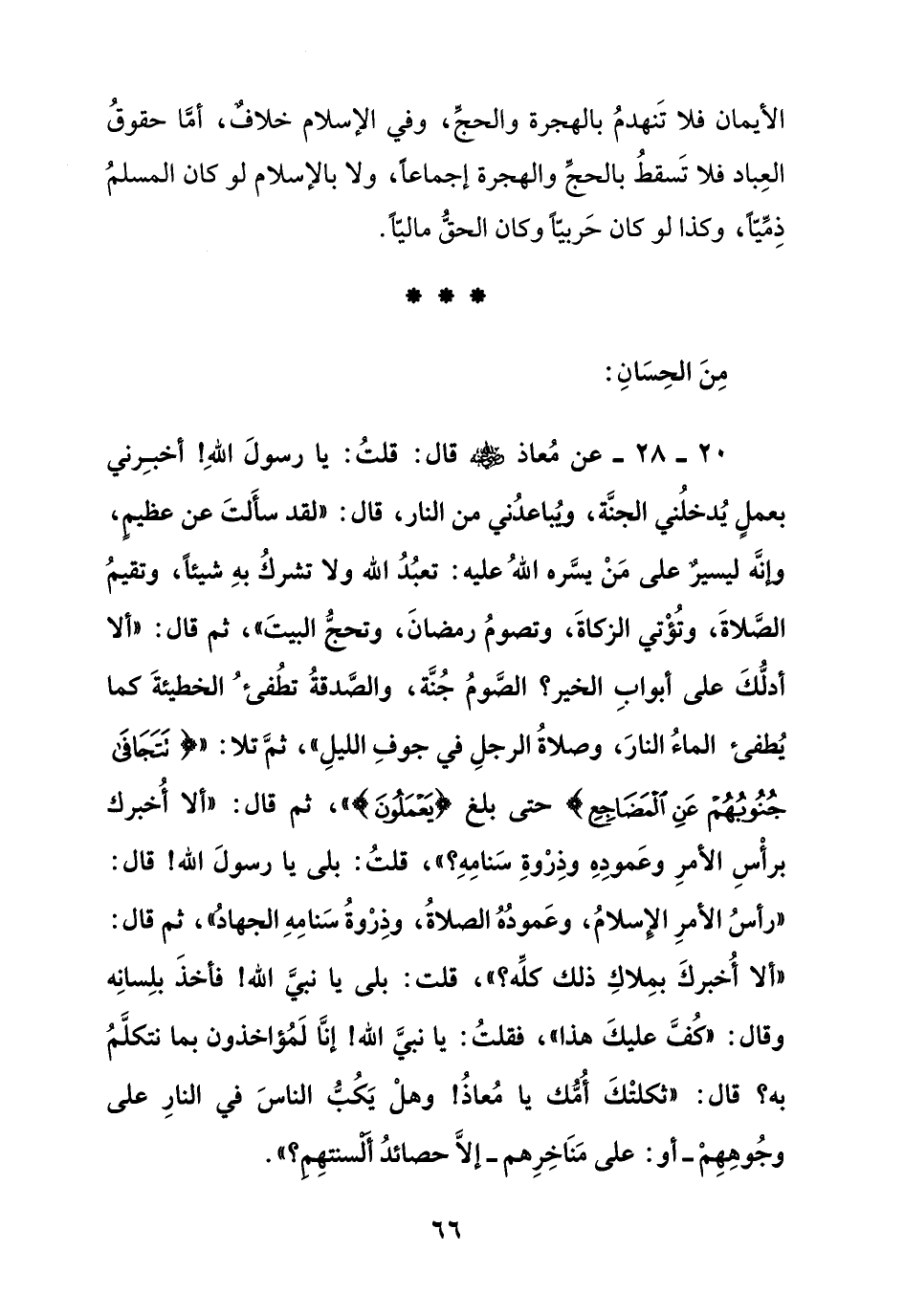 20 – 28 – عن معاذ - رضي الله عنه - قال: قلت: يا رسول الله! أخبرني بعمل يدخلني الجنة,