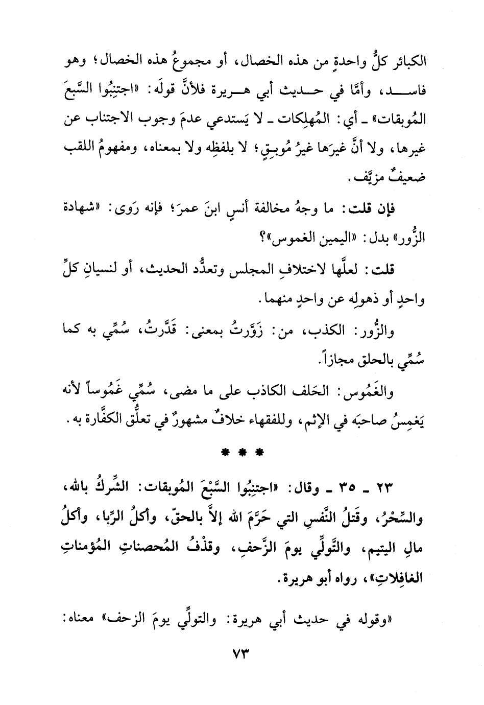 23 – 35 – وقال:" اجتنبوا السبع الموبقات: الشرك بالله, والسحر, وقتل النفس التي
