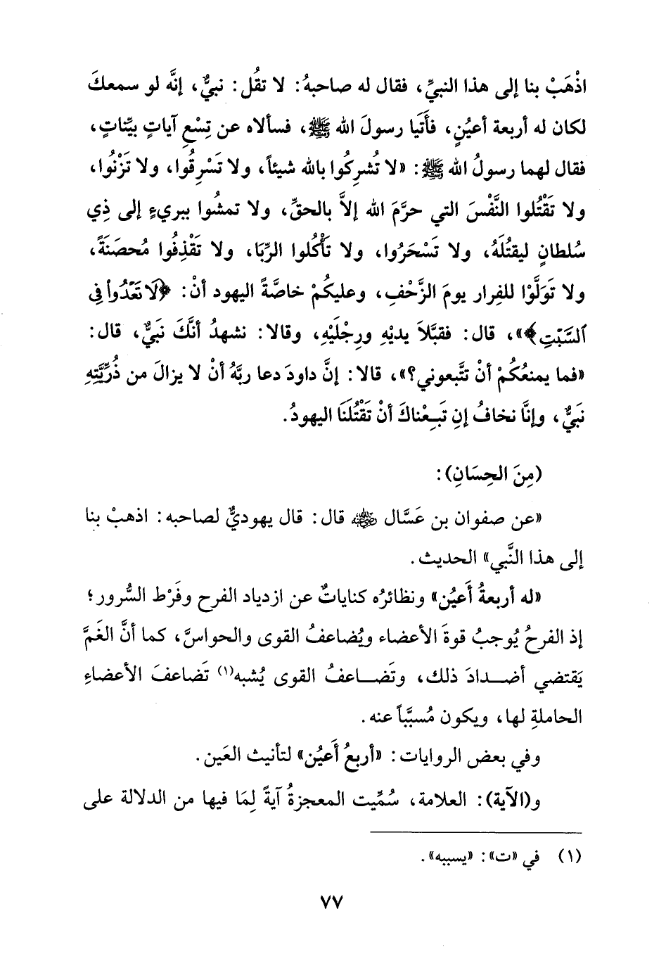 فأتيا رسول الله - صلى الله عليه وسلم - فسألاه عن تسع آيات بينات, فقال لهما رسول الله - صلى الله عليه وسلم -:" لا تشركوا