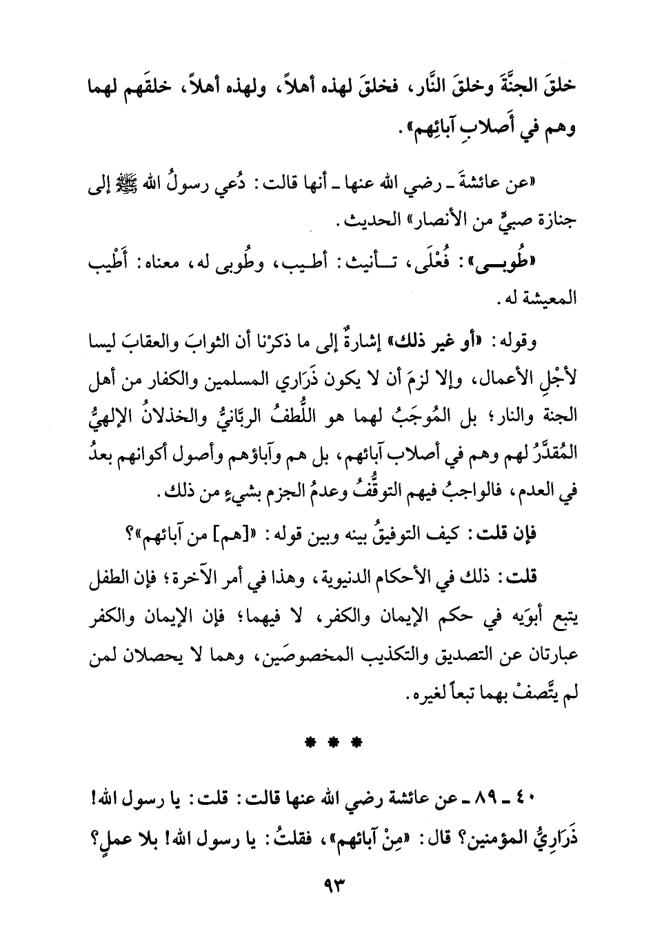 40 – 89 – عن عائشة رضي الله عنها قالت: قلت: يا رسول الله! ذراري المؤمنين؟