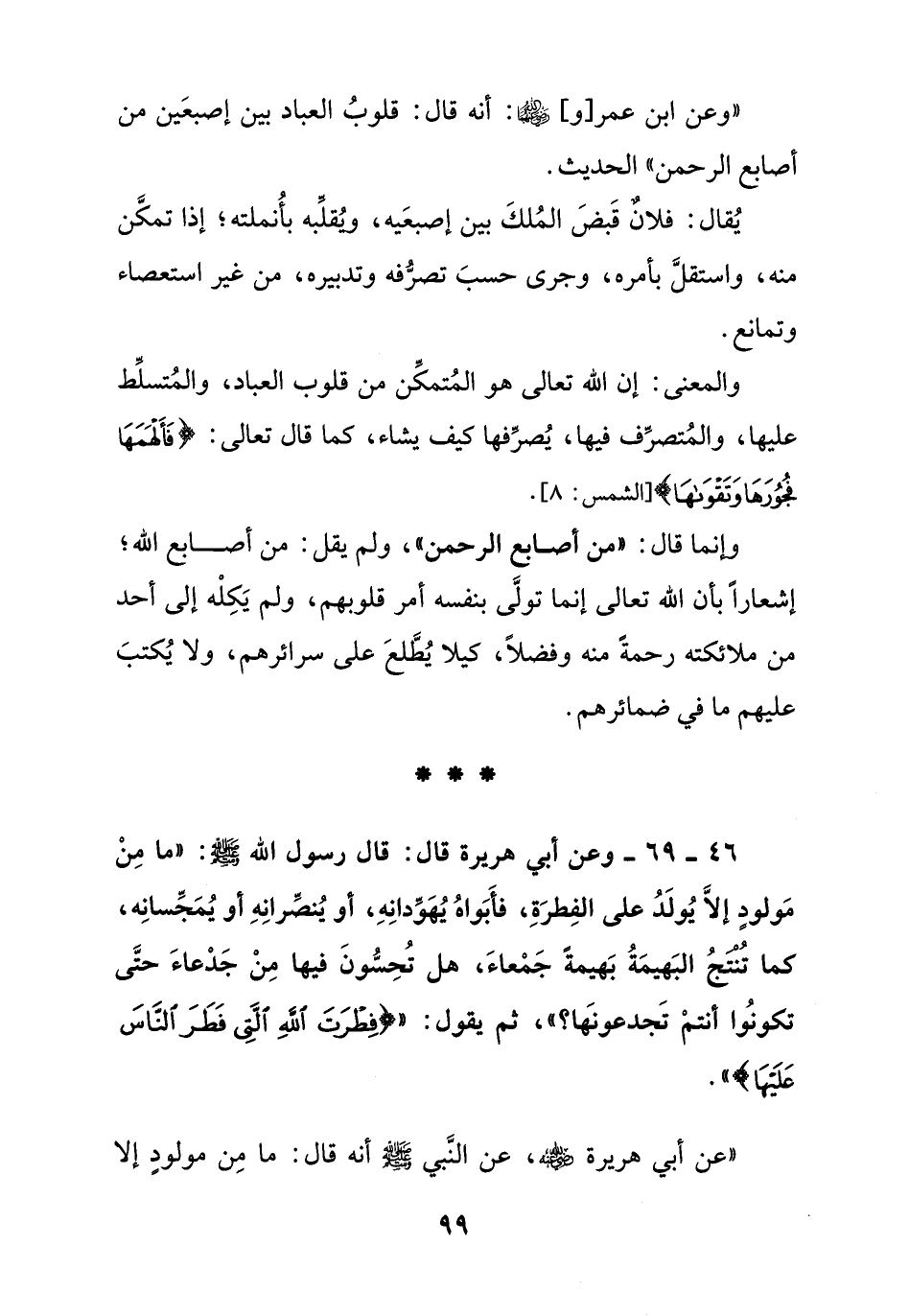 46 – 69 – وعن أبي هريرة قال: قال رسول الله - صلى الله عليه وسلم -: " ما من مولود إلا يولد على الفطرة