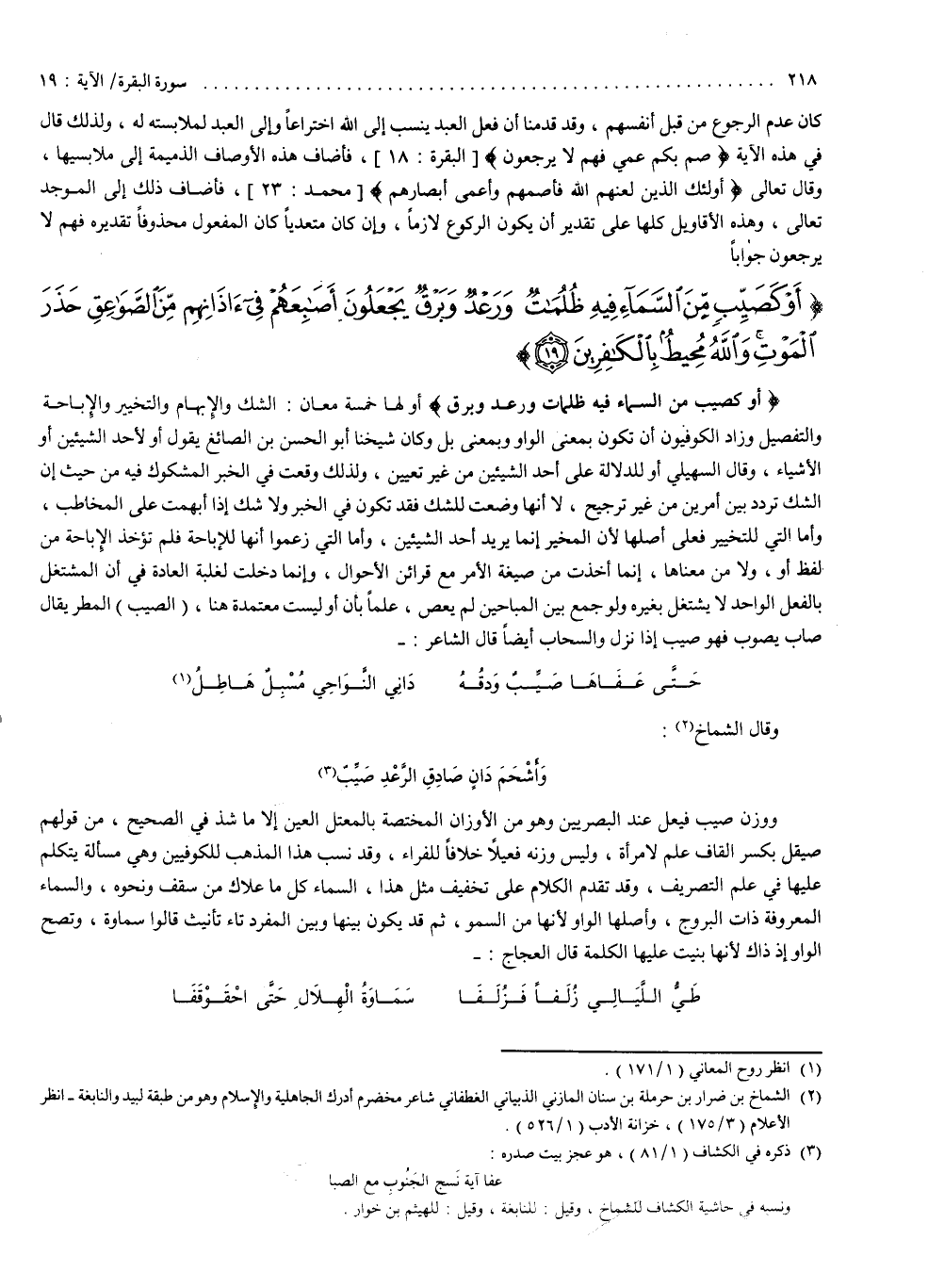 2 ( ) أَوْ كَصَيِّبٍ مِّنَ السَّمَآءِ فِيهِ ظُلُمَاتٌ وَرَعْدٌ وَبَرْقٌ يَجْعَلُونَ أَصْابِعَهُمْ فِىءَاذَانِهِم مِّنَ الصَّوَاعِقِ حَذَرَ الْمَوْتِ وَاللَّهُ مُحِيطٌ بِالْكافِرِينَ ( )
