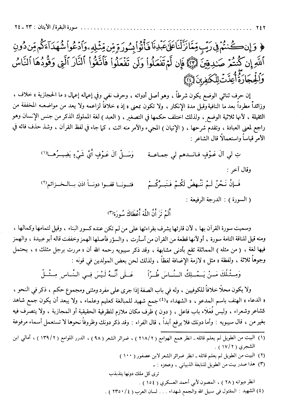 2 ( ) وَإِن كُنتُمْ فِى رَيْبٍ مِّمَّا نَزَّلْنَا عَلَى عَبْدِنَا فَأْتُواْ بِسُورَةٍ مِّن مِّثْلِهِ وَادْعُواْ شُهَدَآءَكُم مِّن دُونِ اللَّهِ إِن كُنتُمْ صَادِقِينَ فَإِن لَّمْ تَفْعَلُواْ وَلَن تَفْعَلُواْ فَاتَّقُواْ النَّارَ الَّتِى وَقُودُهَا النَّاسُ وَالْحِجَارَةُ أُعِدَّتْ لِلْكَافِرِينَ ( ) ) 2