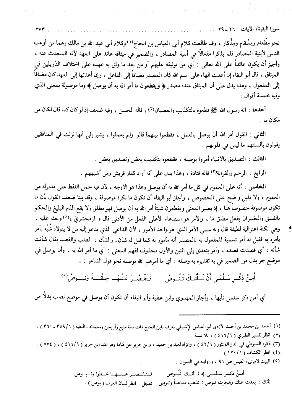 ( وَيَقْطَعُونَ مَا أَمَرَ اللَّهُ بِهِ أَن يُوصَلَ ( : وما موصولة بمعنى الذي ، وفيه خمسة أقوال : أحدها : أنه رسول الله ( صلى الله عليه وسلم ) ) ، قطعوه بالتكذيب والعصيان ، قاله الحسن وفيه ضعف ، إذ لو كان كما قال لكان من مكان ما . الثاني : القول : أمر الله أن يوصل بالعمل فقطعوا بينهما ، قالوا : ولم يعملوا ، يشير إلى أنها نزلت في المنافقين ) يَقُولُونَ بِأَلْسِنَتِهِمْ مَّا لَيْسَ فِى قُلُوبِهِمْ ). الثالث : التصديق بالأنبياء ، أمروا بوصله فقطعوه بتكذيب بعض وتصديق بعض . الرابع : الرحم والقرابة ، قاله قتادة ، وهذا يدل على أنه أراد كفار قريش ومن أشبههم . الخامس : أنه على العموم في كل ما أمر الله به أن يوصل ، وهذا هو الأوجه ، لأن فيه حمل اللفظ على مدلوله من العموم ، ولا دليل واضح على الخصوص .