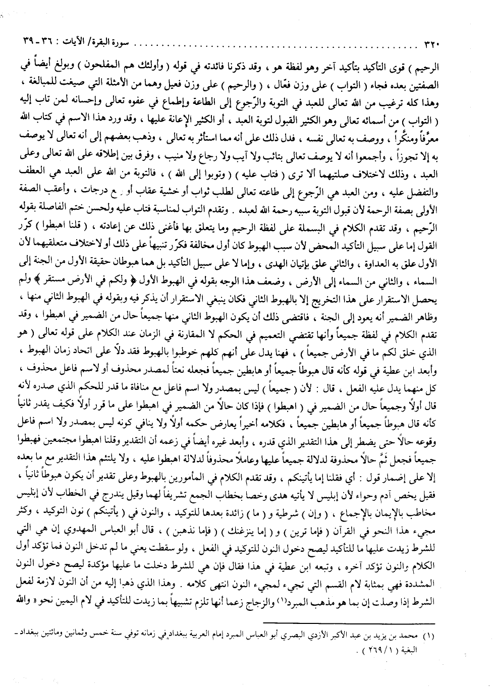 الرَّحِيمُ ( ، قوي التأكيد بتأكيد آخر ، وهو لفظه : ) هُوَ ). وقد ذكرنا فائدته في قوله : ) وَأُوْلَائِكَ هُمُ الْمُفْلِحُونَ ). وبولغ أيضاً في الصفتين بعده ، فجاء التواب : على وزن فعال ، والرحيم : على وزن فعيل ، وهما من الأمثلة التي صيغت للمبالغة . وهذا كله ترغيب من الله تعالى للعبد في التوبة والرّجوع إلى الطاعة ، واطماع في عفوه تعالى وإحسانه لمن تاب إليه . والتواب من أسمائه تعالى ، وهو الكثير القبول لتوبة العبد ، أو الكثير الإعانة عليها . وقد ورد هذا الإسم في كتاب الله معرفاً ومنكراً ، ووصف به تعالى نفسه ، فدل ذلك على أنه مما استأثر به تعالى . وذهب بعضهم إلى أنه تعالى لا يوصف به إلا تجوزاً ، وأجمعوا أنه لا يوصف تعالى بتائب ولا آيب ولا رجاع ولا منيب ، وفرق بين إطلاقه على الله تعالى وعلى العبد ، وذلك لاختلاف صلتيهما . ألا ترى : فتاب عليه ، وتوبوا إلى الله ؟ فالتوبة من الله على العبد هي العطف والتفضل عليه ، ومن العبد هي الرّجوع إلى طاعته تعالى ، لطلب ثواب ، أو خشية عقاب ، أو رفع درجات . وأعقب الصفة الأولى بصفة الرحمة ، لأن قبول التوبة سببه رحمة الله لعبده ، وتقدم التواب لمناسبة فتاب عليه ، ولحسن ختم الفاصلة بقوله : ) الرَّحِيمِ ). وقد تقدم الكلام في البسملة على لفظة الرحيم وما يتعلق بها ، فأغنى ذلك عن إعادته .