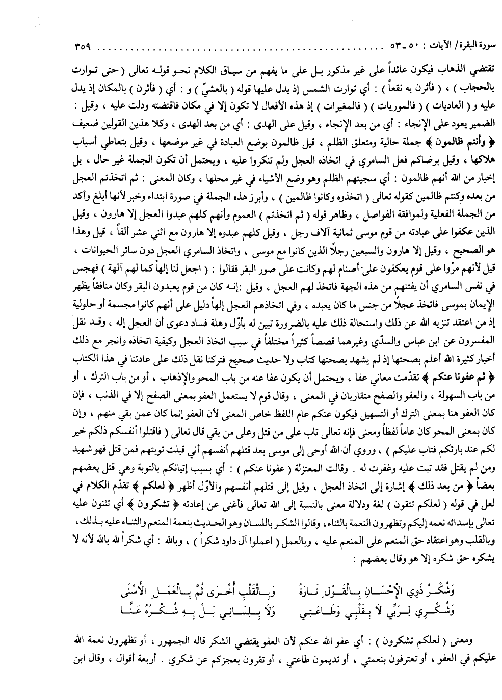 ومعنى لعلكم تشكرون : أي عفو الله عنكم ، لأن العفو يقتضي الشكر ، قاله الجمهور ، أو تظهرون نعمة الله عليكم في العفو ، أو تعترفون بنعمتي ، أو تديمون طاعتي ، أو تقرون بعجزكم عن شكري أربعة أقوال : وقال ابن