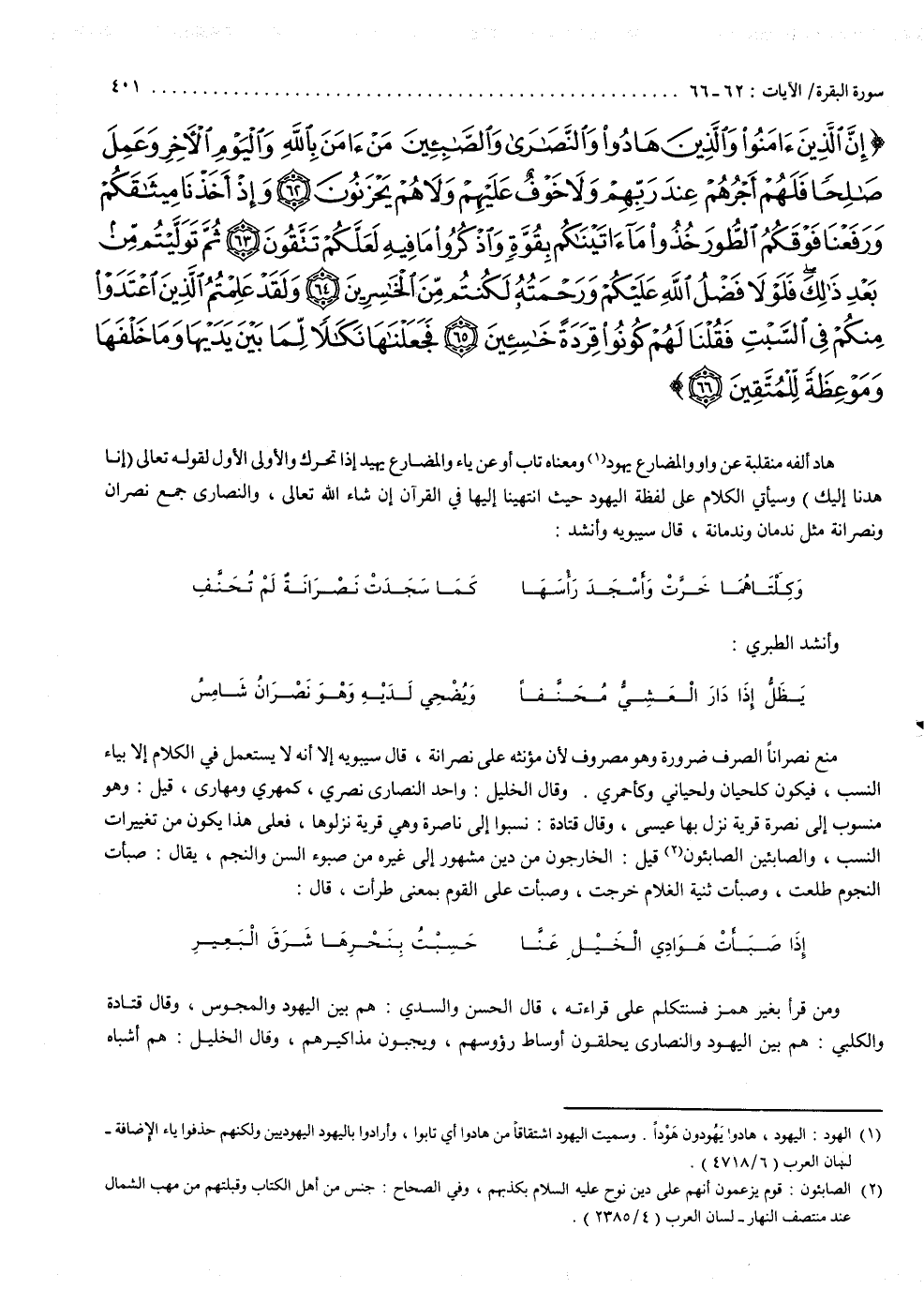 2 ( ) إِنَّ الَّذِينَ ءَامَنُواْ وَالَّذِينَ هَادُواْ وَالنَّصَارَى وَالصَّابِئِينَ مَنْ ءَامَنَ بِاللَّهِ وَالْيَوْمِ الاٌّ خِرِ وَعَمِلَ صَالِحاً فَلَهُمْ أَجْرُهُمْ عِندَ رَبِّهِمْ وَلاَ خَوْفٌ عَلَيْهِمْ وَلاَ هُمْ يَحْزَنُونَ وَإِذْ أَخَذْنَا مِيثَاقَكُمْ وَرَفَعْنَا فَوْقَكُمُ الطُّورَ خُذُواْ مَآ ءَاتَيْنَاكُم بِقُوَّةٍ وَاذْكُرُواْ مَا فِيهِ لَعَلَّكُمْ تَتَّقُونَ ثُمَّ تَوَلَّيْتُم مِّن بَعْدِ ذالِكَ فَلَوْلاَ فَضْلُ اللَّهِ عَلَيْكُمْ وَرَحْمَتُهُ لَكُنتُم مِّنَ الْخَاسِرِينَ وَلَقَدْ عَلِمْتُمُ الَّذِينَ اعْتَدَواْ مِنكُمْ فِى السَّبْتِ فَقُلْنَا لَهُمْ كُونُواْ قِرَدَةً خَاسِئِينَ فَجَعَلْنَاهَا نَكَالاً لِّمَا بَيْنَ يَدَيْهَا وَمَا خَلْفَهَا وَمَوْعِظَةً لِّلْمُتَّقِينَ ( ) ) 2
