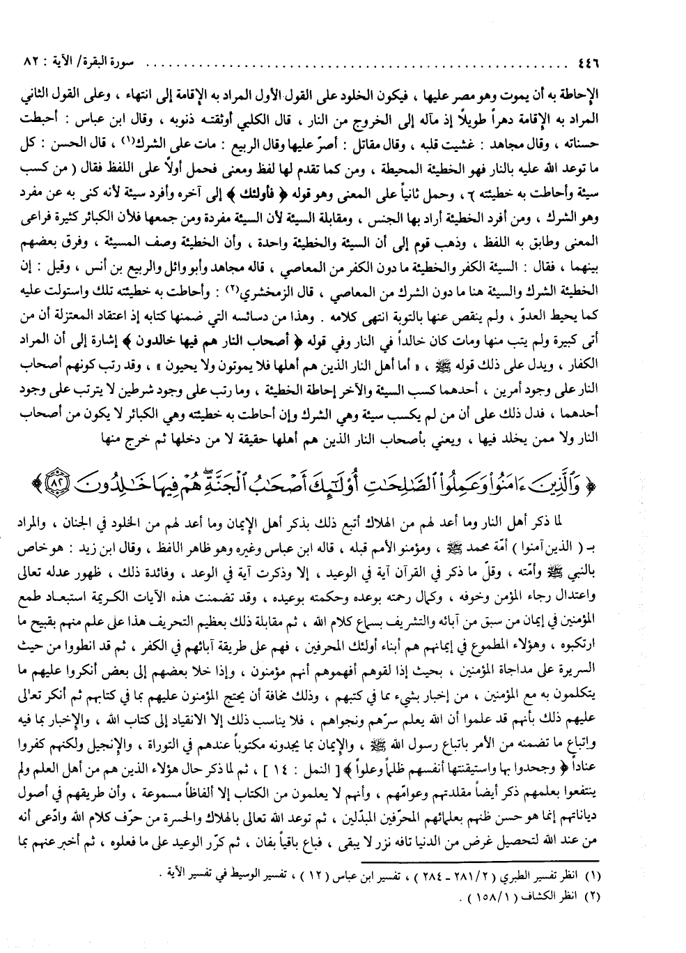 البقرة : ( 82 ) والذين آمنوا وعملوا . . . . .