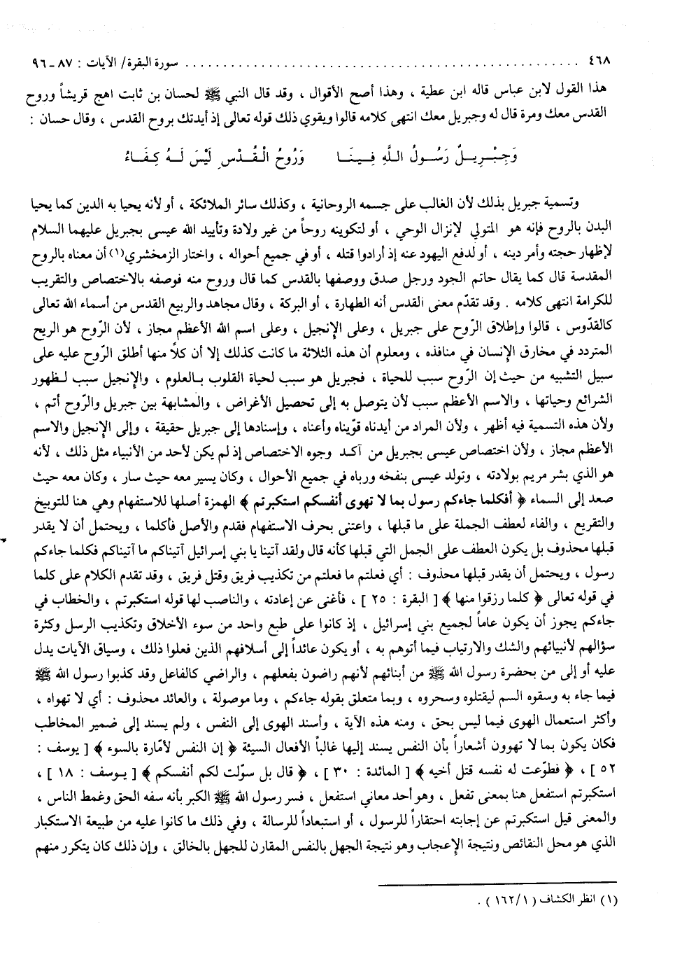 هذا القول لابن عباس ، قاله ابن عطية ، وهذا أصح الأقوال . وقد قال النبي ( صلى الله عليه وسلم ) ) لحسان بن ثابت ( أهج قريشاً وروح القدس معك ) ، ومرة قال له ؛ ( وجبريل معك ) . انتهى كلامه . قالوا : ويقوي ذلك قوله تعالى : ) إِذْ أَيَّدتُّكَ بِرُوحِ الْقُدُسِ ). وقال حسان : وجبريل رسول الله فينا