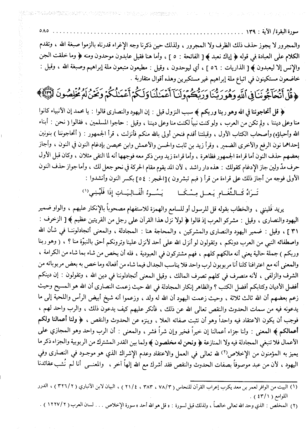 البقرة : ( 139 ) قل أتحاجوننا في . . . . .