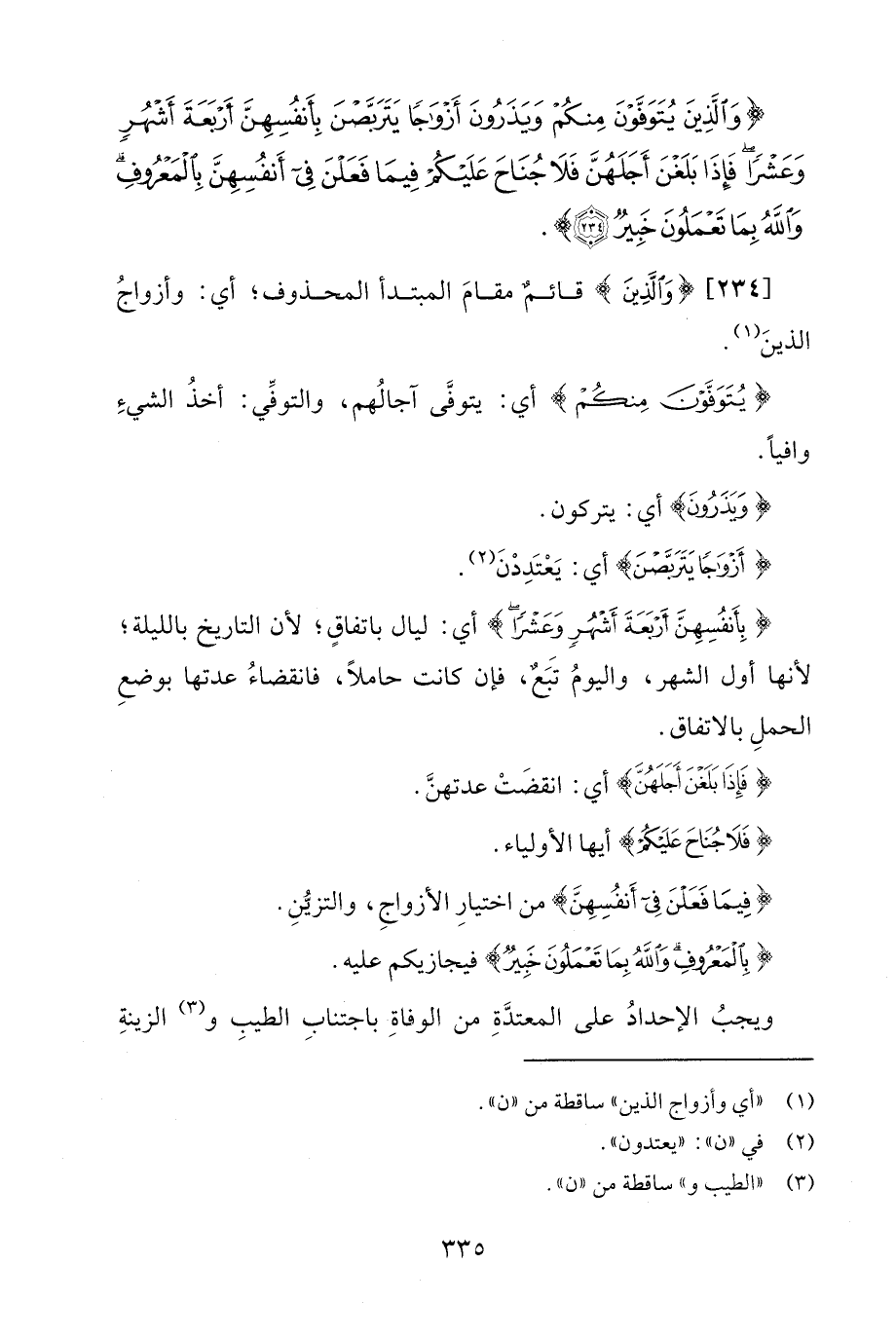 {وَالَّذِينَ يُتَوَفَّوْنَ مِنْكُمْ وَيَذَرُونَ أَزْوَاجًا يَتَرَبَّصْنَ بِأَنْفُسِهِنَّ أَرْبَعَةَ أَشْهُرٍ وَعَشْرًا فَإِذَا بَلَغْنَ أَجَلَهُنَّ فَلَا جُنَاحَ عَلَيْكُمْ فِيمَا فَعَلْنَ فِي أَنْفُسِهِنَّ بِالْمَعْرُوفِ وَاللَّهُ بِمَا تَعْمَلُونَ خَبِيرٌ (234)}.