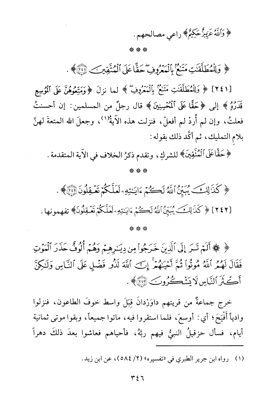 [241] {وَلِلْمُطَلَّقَاتِ مَتَاعٌ بِالْمَعْرُوفِ} لما نزلَ {وَمَتِّعُوهُنَّ عَلَى الْمُوسِعِ قَدَرُهُ} إلى {حَقًّا عَلَى الْمُحْسِنِينَ} قال رجلٌ من المسلمين: إن أحسنتُ فعلتُ، وإن لم أُردْ لم أفعلْ، فنزلت هذه الآيةُ (¬1)، وجعلَ الله المتعةَ لهنَّ بلامِ التمليك، ثم أكَّد ذلك بقوله: