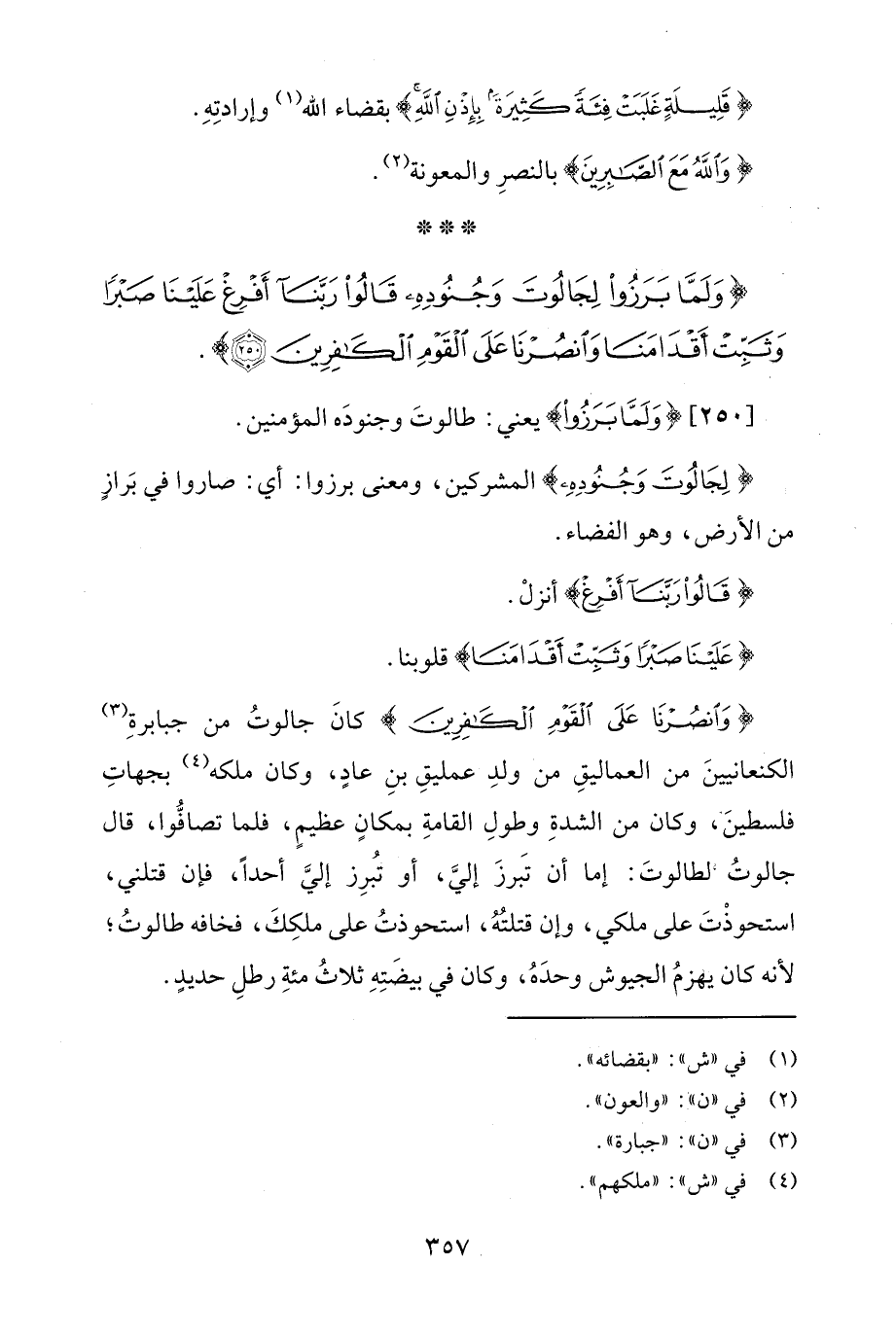 [250] {وَلَمَّا بَرَزُوا} يعني: طالوتَ وجنودَه المؤمنين.