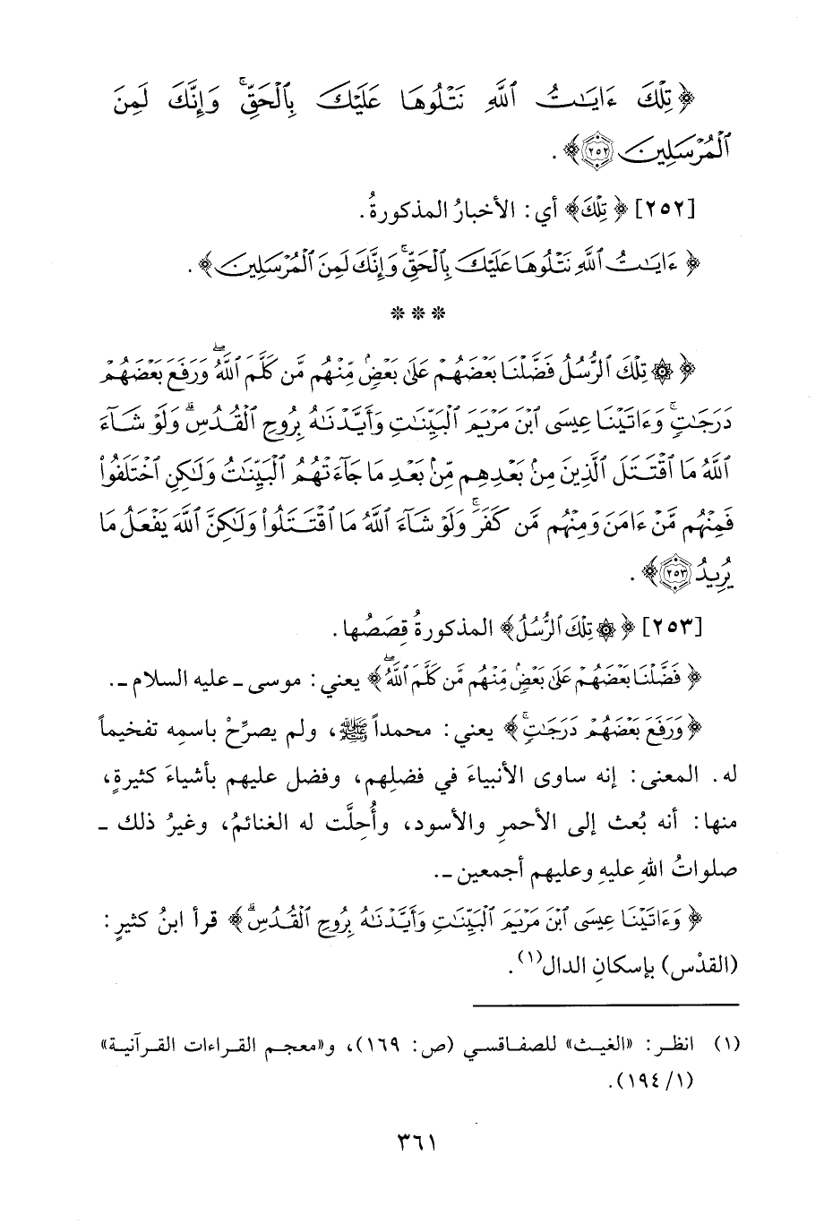 {تِلْكَ الرُّسُلُ فَضَّلْنَا بَعْضَهُمْ عَلَى بَعْضٍ مِنْهُمْ مَنْ كَلَّمَ اللَّهُ وَرَفَعَ بَعْضَهُمْ دَرَجَاتٍ وَآتَيْنَا عِيسَى ابْنَ مَرْيَمَ الْبَيِّنَاتِ وَأَيَّدْنَاهُ بِرُوحِ الْقُدُسِ وَلَوْ شَاءَ اللَّهُ مَا اقْتَتَلَ الَّذِينَ مِنْ بَعْدِهِمْ مِنْ بَعْدِ مَا جَاءَتْهُمُ الْبَيِّنَاتُ وَلَكِنِ اخْتَلَفُوا فَمِنْهُمْ مَنْ آمَنَ وَمِنْهُمْ مَنْ كَفَرَ وَلَوْ شَاءَ اللَّهُ مَا اقْتَتَلُوا وَلَكِنَّ اللَّهَ يَفْعَلُ مَا يُرِيدُ (253)}.