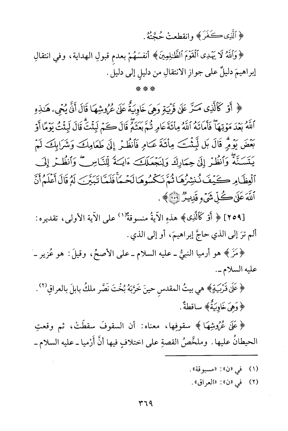 {عَلَى قَرْيَةٍ} هي بيتُ المقدسِ حينَ خَرَّبَهُ بُخْتَ نَصَّر ملكُ بابلَ بالعراقِ (¬2).