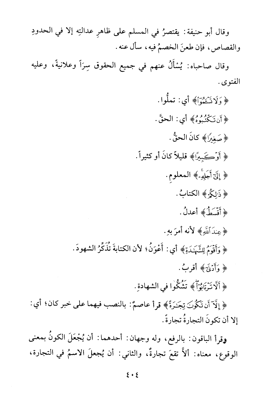 {إِلَّا أَنْ تَكُونَ تِجَارَةً} قرأ عاصمٌ: بالنصب فيهما على خبر كان؛ أي: إلا أن تكونَ التجارةُ تجارةً.