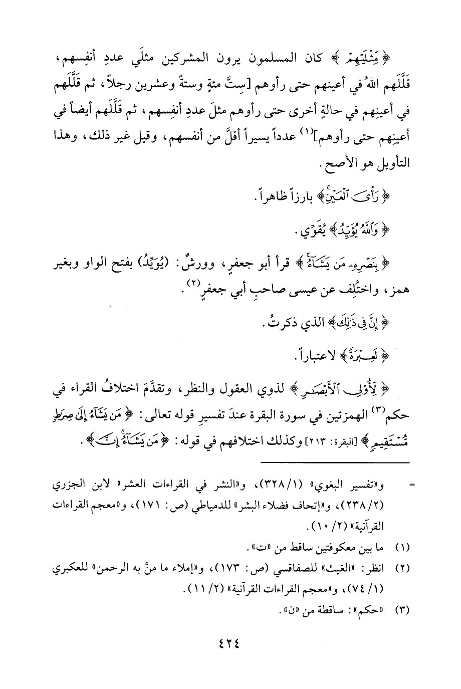 {بِنَصْرِهِ مَنْ يَشَاءُ} قرأ أبو جعفرٍ، وورشٌ: (يُوَيِّدُ) بفتح الواو وبغير همز، واختُلِف عن عيسى صاحبِ أبي جعفرٍ (¬2).