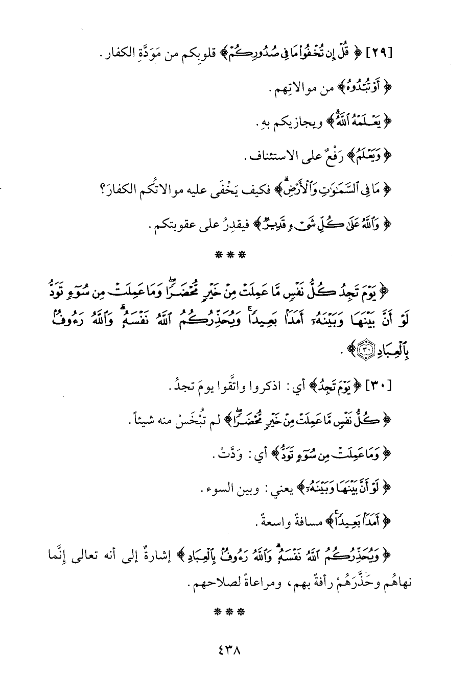 {يَوْمَ تَجِدُ كُلُّ نَفْسٍ مَا عَمِلَتْ مِنْ خَيْرٍ مُحْضَرًا وَمَا عَمِلَتْ مِنْ سُوءٍ تَوَدُّ لَوْ أَنَّ بَيْنَهَا وَبَيْنَهُ أَمَدًا بَعِيدًا وَيُحَذِّرُكُمُ اللَّهُ نَفْسَهُ وَاللَّهُ رَءُوفٌ بِالْعِبَادِ (30)}.