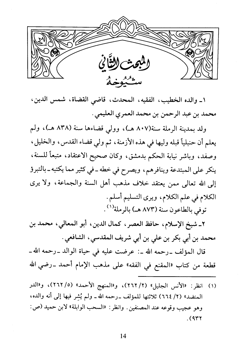(¬1) انظر: "الأنس الجليل" (2/ 262)، و"المنهج الأحمد" (5/ 262)، و"الدر المنضد" (2/ 664) ثلاثتها للمؤلف -رحمه الله- ولم يُشِر فيها إلى أنه والده، وهو عجيب وقوعه عند المصنفين. وانظر: "السحب الوابلة" لابن حميد (ص: 932).