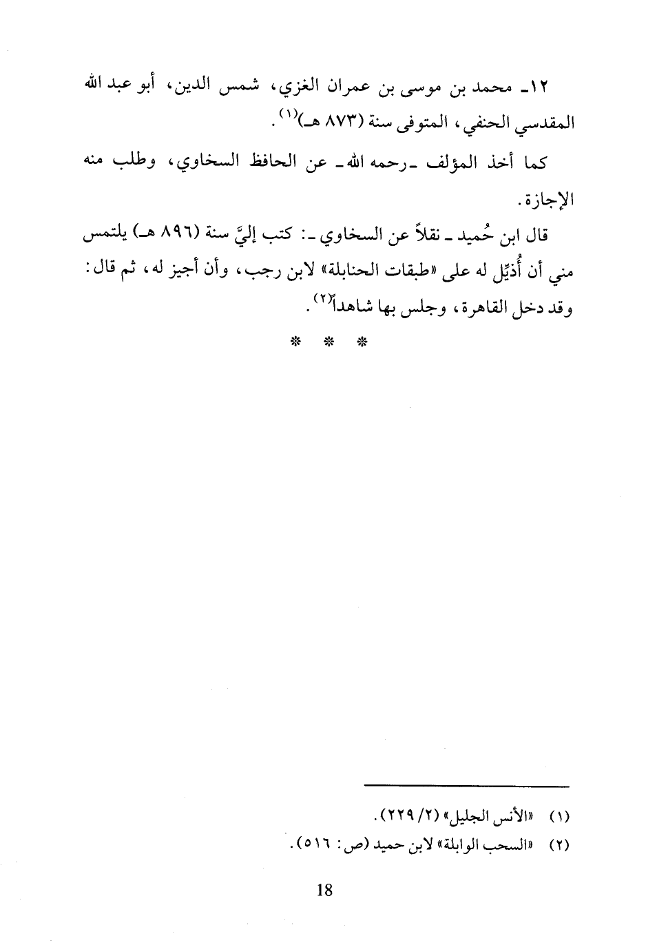 12 - محمد بن موسي بن عمران الغزي، شمس الدين، أبو عبد الله المقدسي الحنفي، المتوفى سنة (873 هـ) (¬1).