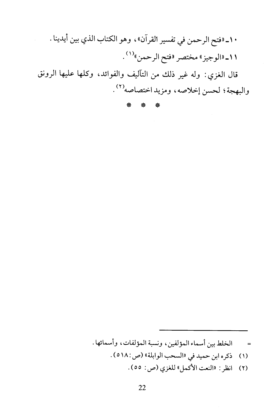 10 - "فتح الرحمن في تفسير القرآن"، وهو الكتاب الذي بين أيدينا.