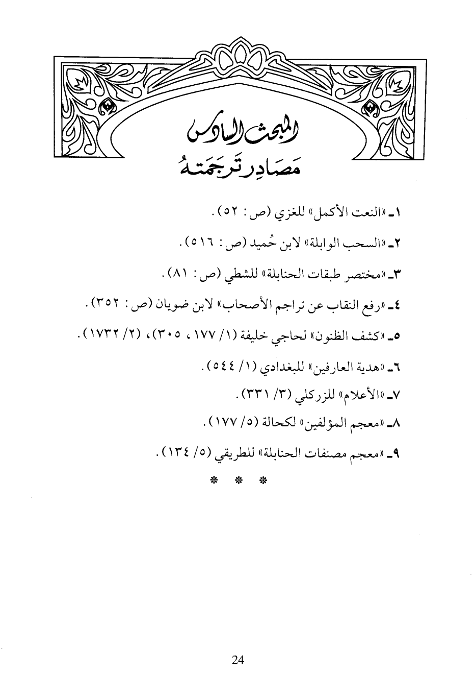 9 - "معجم مصنفات الحنابلة" للطريقي (5/ 134).