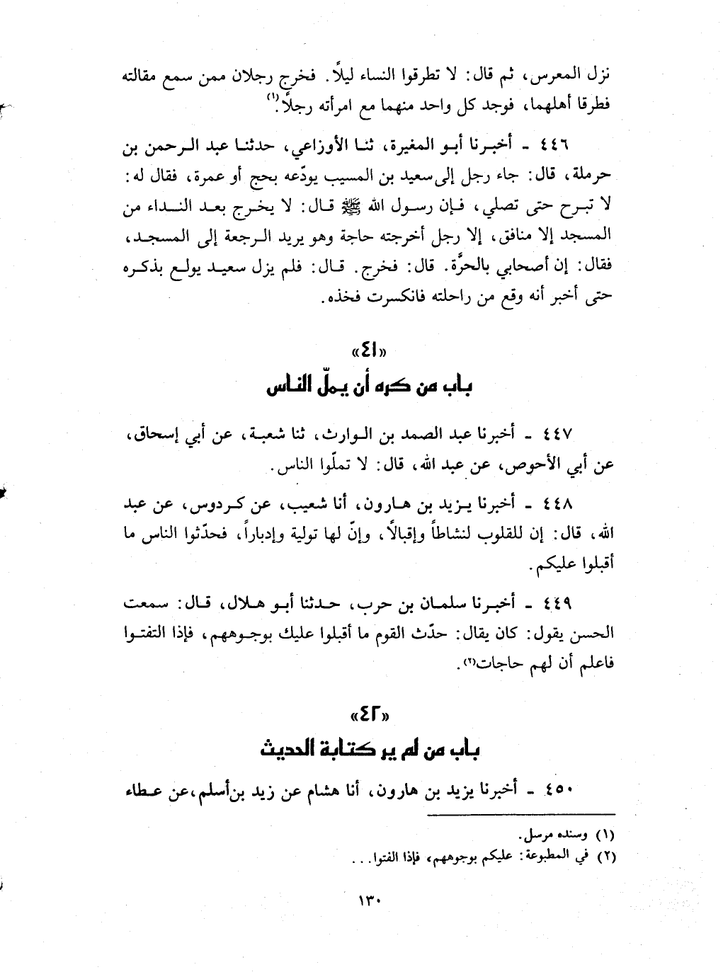 447 - أخبرنا عبد الصمد بن الوارث ثنا شعبة عن أبي إسحاق عن أبي الأحوص عن عبد الله قال : لا تملوا الناس