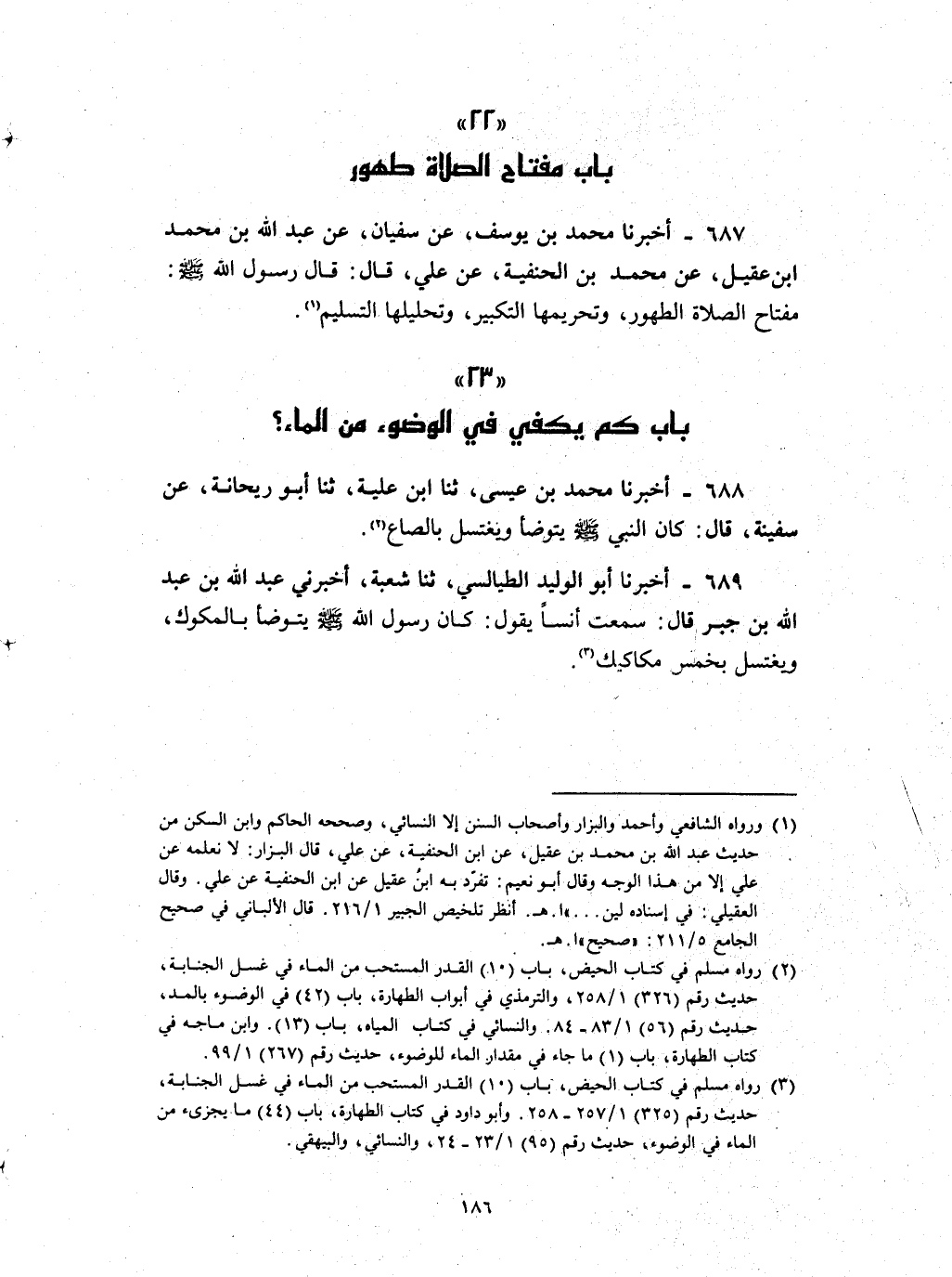 688 - أخبرنا محمد بن عيسى ثنا بن علية ثنا أبو ريحانة عن سفينة قال : كان النبي صلى الله عليه و سلم يتوضأ ويغتسل بالصاع