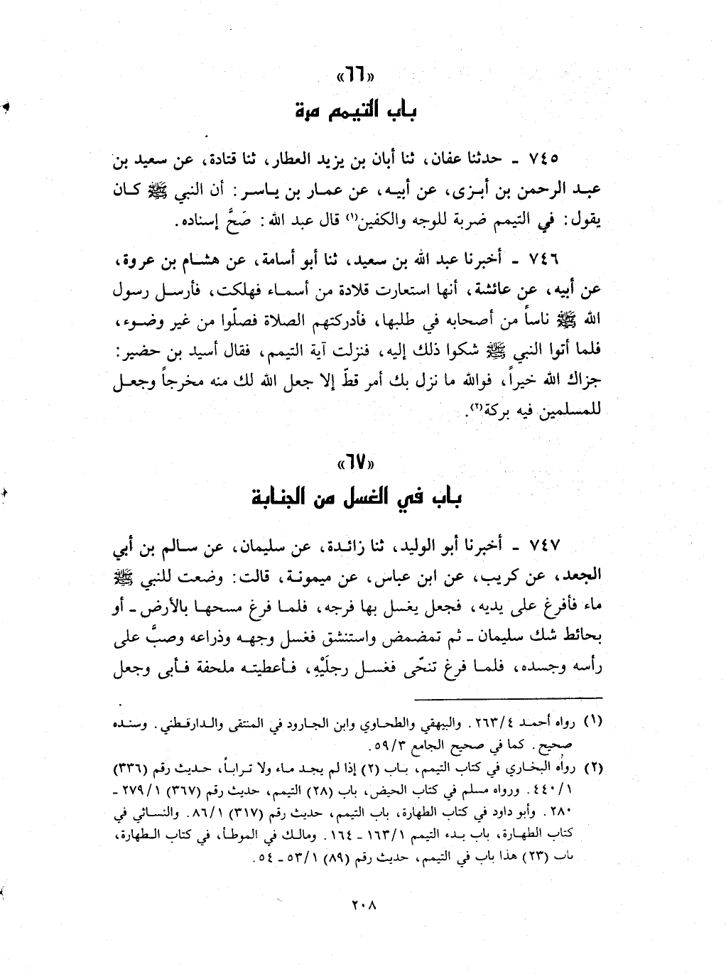 745 - حدثنا عفان ثنا أبان بن يزيد العطار ثنا قتادة عن سعيد بن عبد الرحمن بن أبزى عن أبيه عن عمار بن ياسر ان النبي صلى الله عليه و سلم كان يقول : في التيمم ضربة للوجه والكفين قال عبد الله صح إسناده