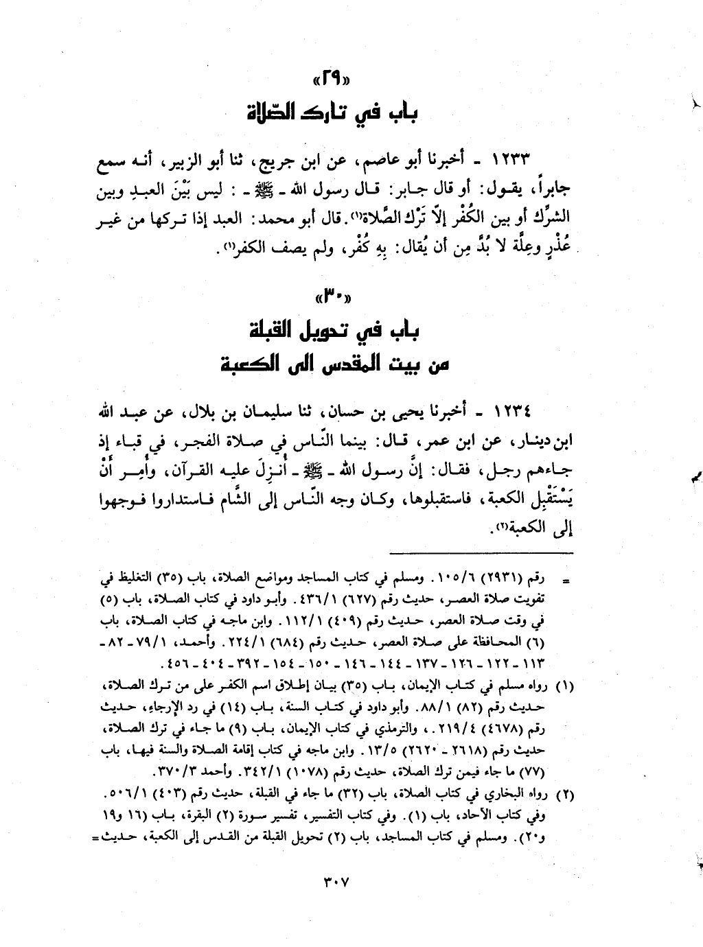 1233 - أخبرنا أبو عاصم عن بن جريج حدثنا أبو الزبير انه سمع جابرا يقول أو قال جابر قال رسول الله صلى الله عليه و سلم : ليس بين العبد وبين الشرك أو بين الكفر الا ترك الصلاة قال أبو محمد العبد إذا تركها من غير عذر وعلة لا بد من ان يقال به كفر ولم يصف الكفر