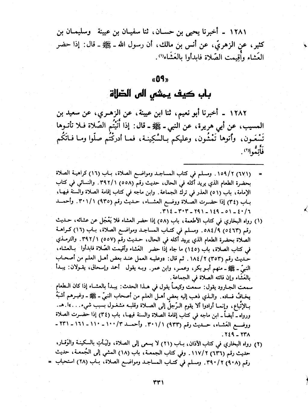 1282 - أخبرنا أبو نعيم ثنا بن عيينة عن الزهري عن سعيد بن المسيب عن أبي هريرة عن النبي صلى الله عليه و سلم قال : إذا أتيتم الصلاة فلا تأتوها تسعون وأتوها تمشون وعليكم بالسكينة فما أدركتم صلوا وما فاتكم فأتموا