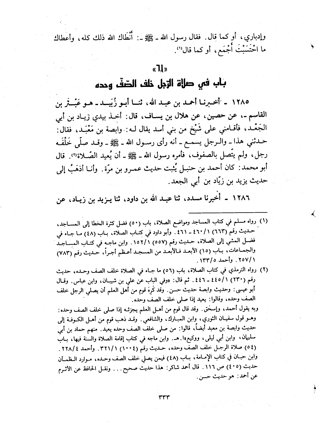 ( 61 باب في صلاة الرجل خلف الصف وحده )